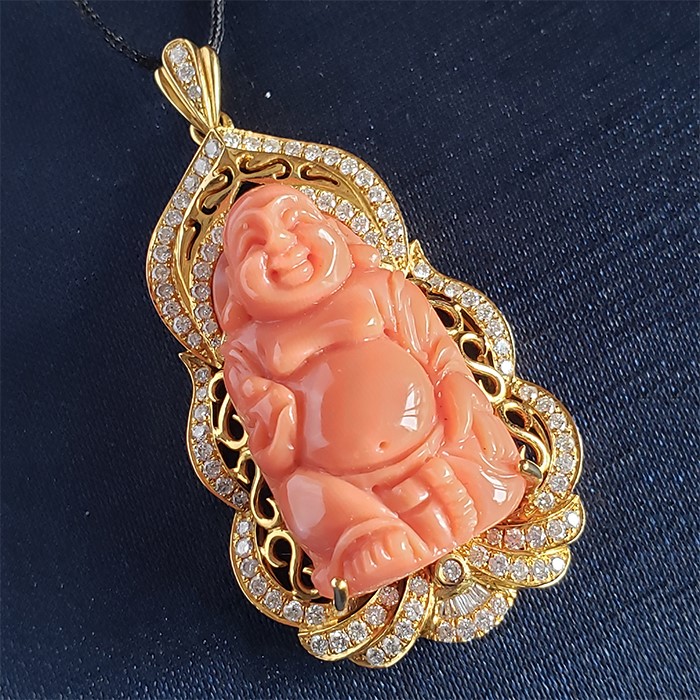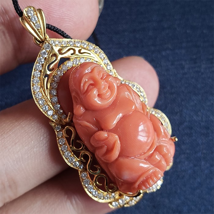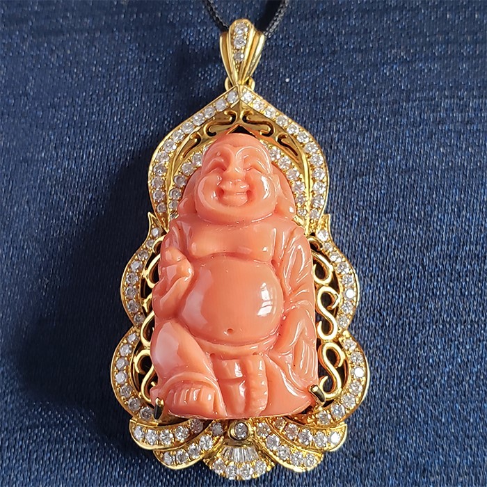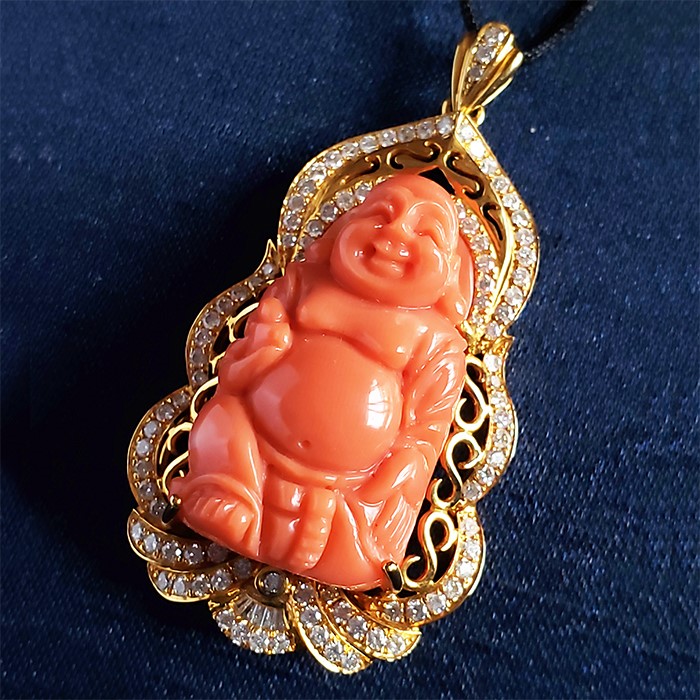 • Au750珊瑚佛公吊墜